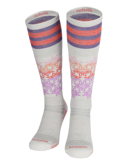 Erlebe den ganzen Tag über Komfort mit unseren Sockwell Skisocken. Mit einem moderaten Druck von 15-20 mmHg bieten sie optimale Unterstützung für einen ganzen Tag auf der Piste. Diese Socken sind speziell für Ski- und Snowboardfahrerinnen entwickelt, bieten jedoch auch bei allen anderen Wintersportarten Vorteile.